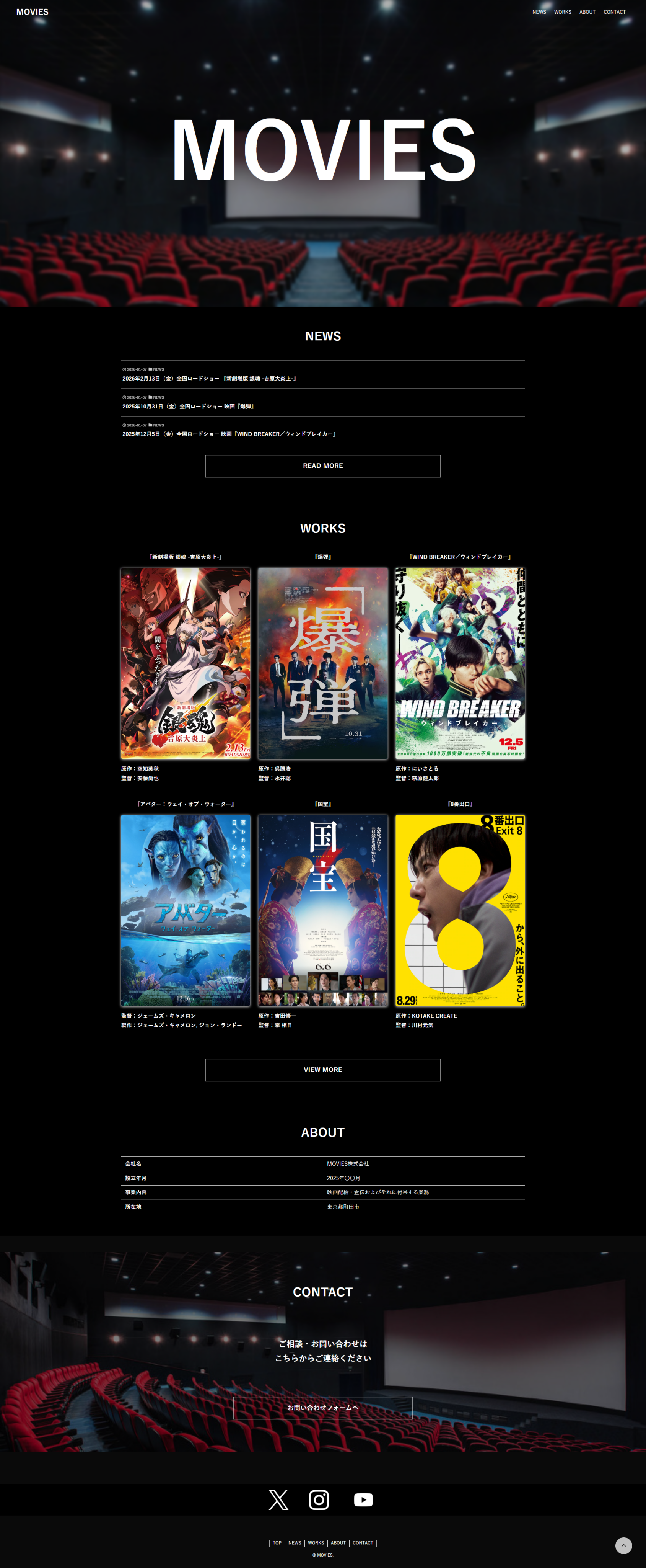 | クライアント | 映画配給関連のクライアント様を想定したデモサイトです。 映画・宣伝業 |